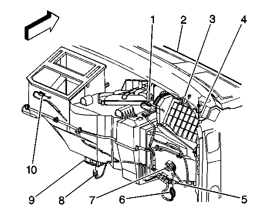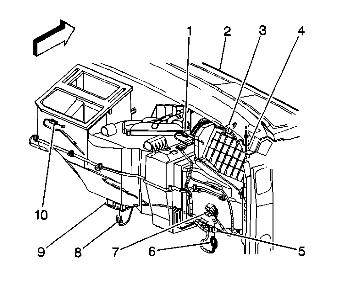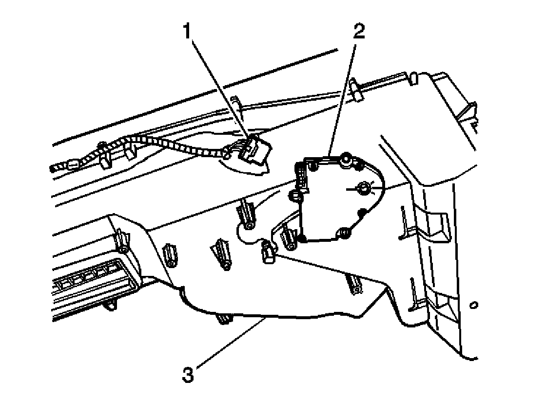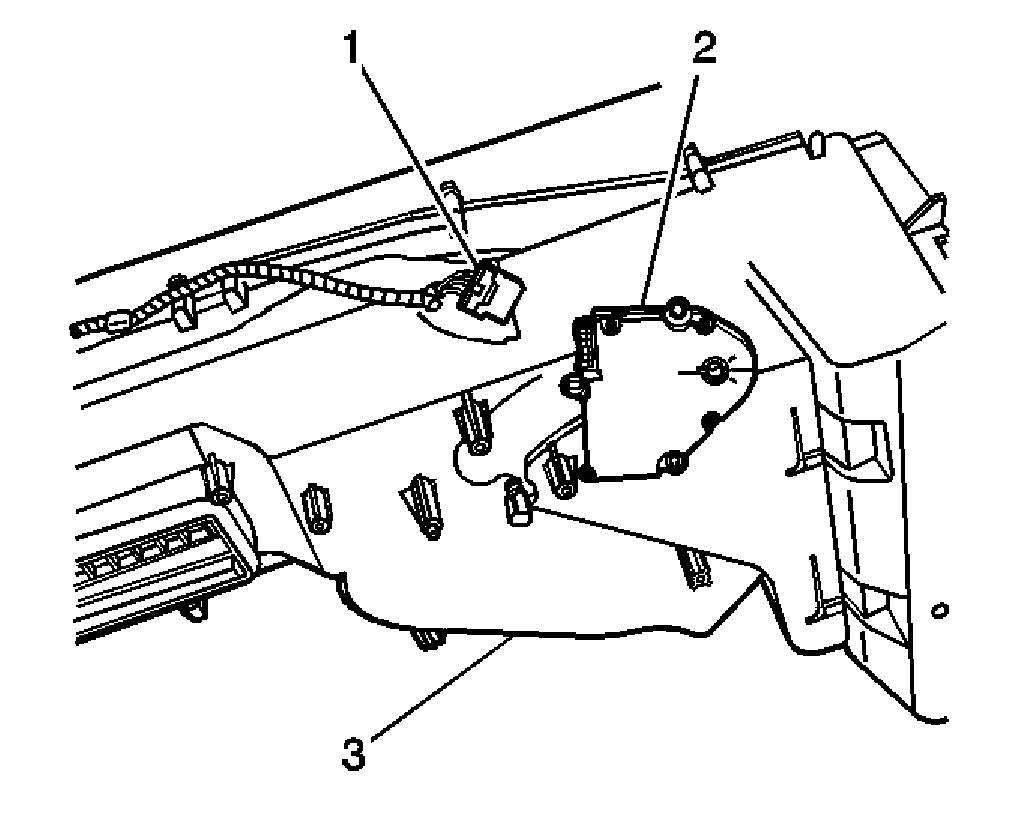 1. Install the left air temperature actuator (2) to the HVAC module assembly (3).
