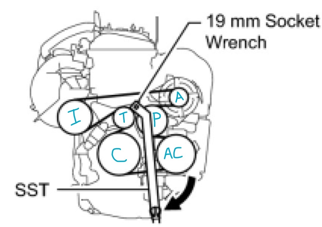 At first, it was just a squeaking noise on first start up of the day for briefly 2 seconds. Then only later in the day if I had my AC or heat on. I'd turn the AC or heat off and the squeak would cease to exist. Only while slowing down too the squeak would come back. I was driving the other night and hit a puddle in a Taco Bell parking lot going no faster than 5. It was a pretty big puddle though since it was raining the past couple of hours. Immediately after a grinding noise came about. Now there's no more squeaking at all so the problem got worse. I ended up changing the alternator, AC pulley, and the belt. Power was flickering at night and no more now, the AC blows cold now with out it going straight to warm so I know I did something good. The grinding noise is still there and I can't tell which pulley to get because I need a labeled diagram that's no longer on my hood. May I have a diagram that has labels so I can figure his out?