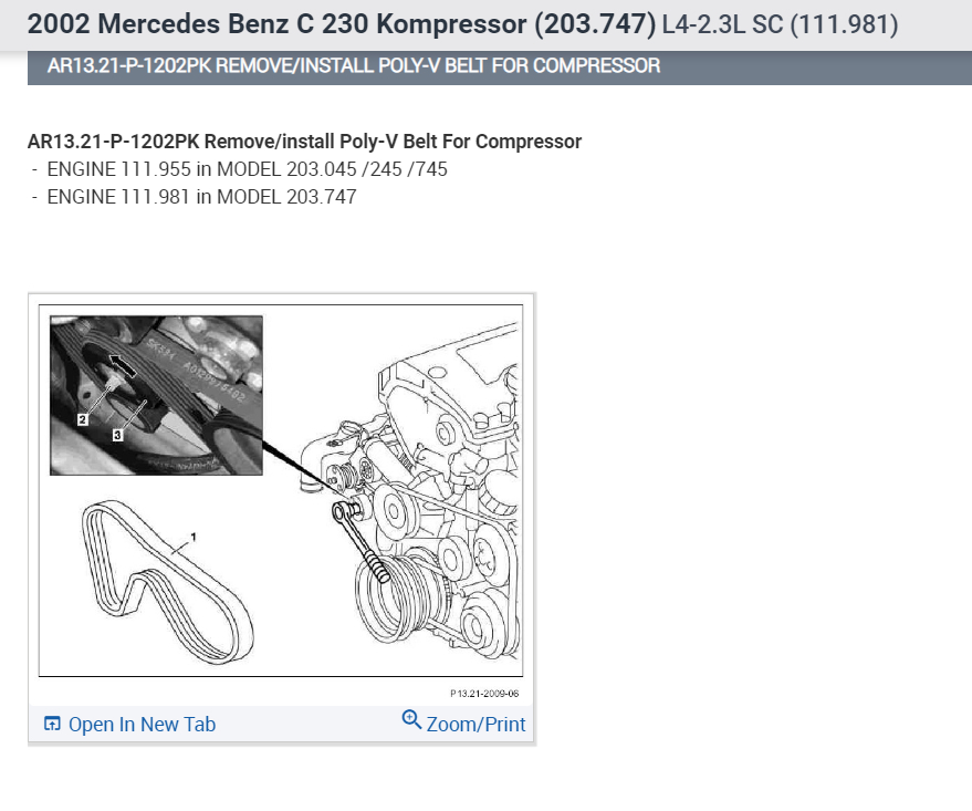 I need diagram for both belts for the car listed above, its a Kompressor. I need to know how both belts go on the one in back and on in front of the other one.