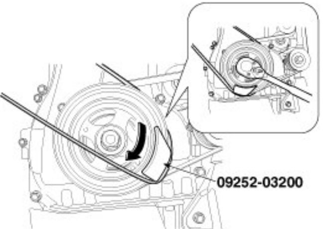 For anyone in the future looking for information on this, because this car (the hybrid) doesn't seem to have hardly any information online. In the diagram (A) is the tension pulley that is obvious. However (C) is also a tension pulley, you need to relieve the tension on both of these pulley's at the same time to get the belt back on. After knowing this you can see it is trying to show that in the diagram but it doesn't really stand out, at least didn't to me. Hopefully this helps someone in the future.