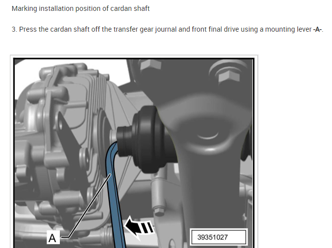Fluid was dark but made no difference. Binding on turns say while in driveway and the hesitation while driving low speeds. Had BMWs that way and it was the transfer case but not sure how the front shaft can be removed as these have no bolts. Can you see how it can be removed?