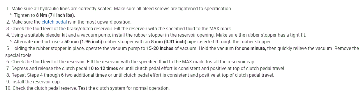 I just finished installing a new clutch. I bench bled the throw out bearing before I installed it. Now I have seen many people install a stopper on top of the brake fluid reservoir. I did that, my question is when I install the stopper on top with a hose in the middle and a vacuum pump, I pump the pedal several times the I release the air. Does the hose need to be immersed in the fluid when I pump the vacuum pump, or just on top of the fluid level?