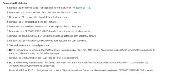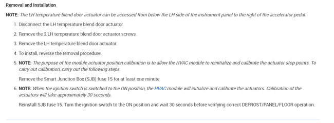 I replaced the blend door actuator and can observe both the mode and blend door actuators turning and cycling through their positions when resetting the climate control (pull fuse 15, turn to "on", then replace fuse 15).