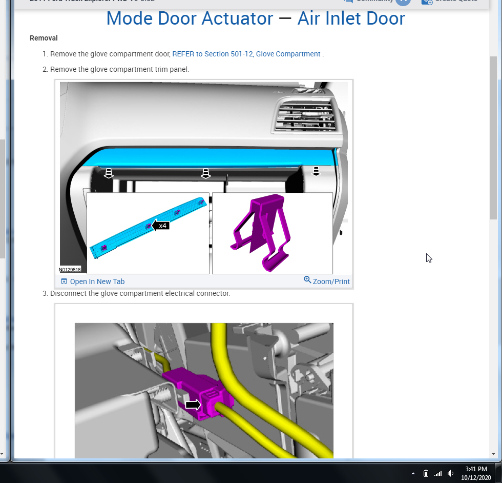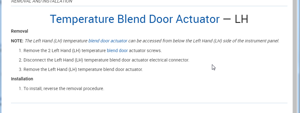 I started hearing a clicking noise in my dash when I opened my car door. I researched this online and found that a bad blend door actuator makes this noise and failure on the Ford Explorers is a common problem. I didn't notice any issues with the AC/temperature/vents, etc. Just the clicking. I researched the replacement part, purchased it and replaced it. The clicking noise did not stop with the new actuator installed. Before I put the glove box back in, I could hold my hand on the new actuator while the clicking noise was happening and feel it ticking behind the actuator? Ideas? I did not check the door manually and try to turn it manually before installing the replacement part. Could there be an obstruction that is preventing it from opening? Could it be a fuse/relay issue? What fuse/relay powers it? I cannot find a clear answer in the diagrams?
