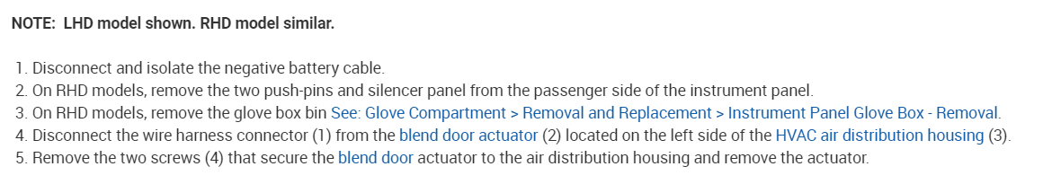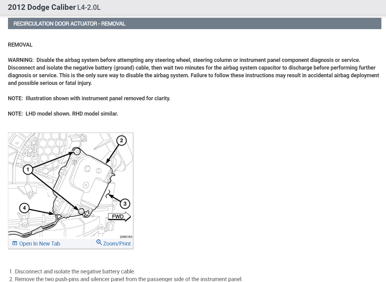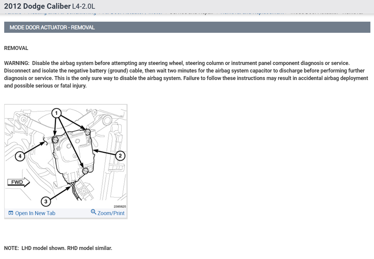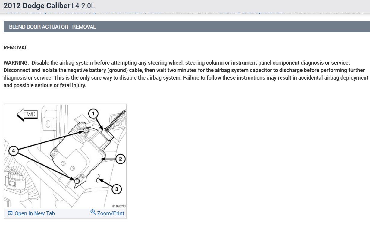I have a clicking noise in the dash on the passenger side. I stopped by the dealer and they are saying around $700.00 to fix. They said that they believe it is the blend door actuator. I have found the part for less then $50.00, but I cannot find a video or anything on how to access it in a Caliber. I have found for an avenger. Would it be the same for the Caliber or how do I access it? Your help on instructing what or how to remove glove box or whatever else I need to do to access would be wonderful. Thank you very much for your prompt attention and help. Have a great day!