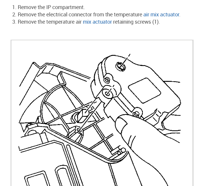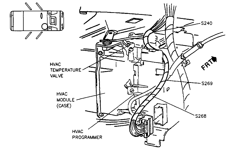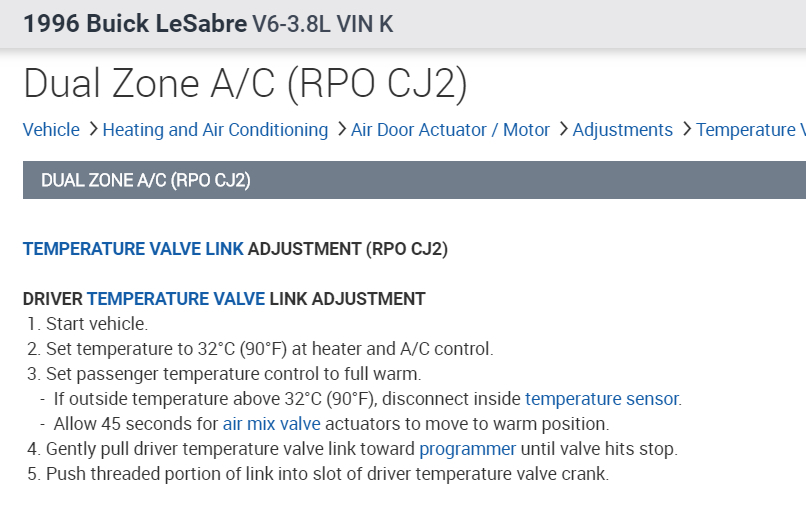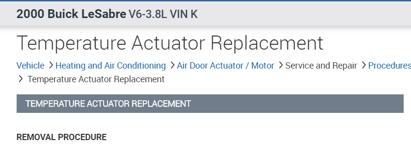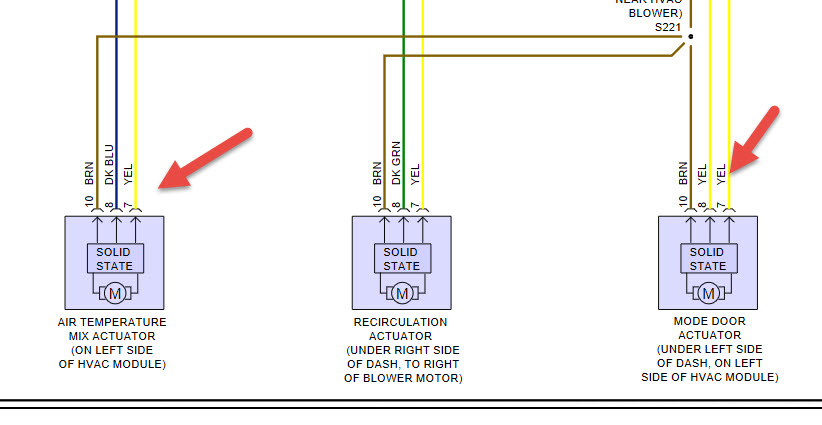 DRIVER'S-SIDE TEMPERATURE CONTROL SELECTOR INOPERATIVE 2000 Models (Single & Dual Zone Systems) 1. Check HVAC (10-amp) fuse in instrument panel fuse block. If fuse is okay, go to step 3. If fuse is blown, go to next step. 2. Check for short to ground in Brown wire between instrument panel fuse block and A/C-heater control panel Black 12-pin harness connector C2 terminal "C". See Fig. 3 . Repair Brown wire as necessary. After repair, go to step 18. 3. Turn ignition switch to OFF position. Disconnect A/C-heater control panel Black 12-pin harness connector C2. Using a DVOM, measure voltage between A/C-heater control panel harness connector C2 terminals "C" (Brown wire) and "K" (Black wire). If battery voltage does not exist, go to next step. If battery voltage exists, go to step 7. 4. Using a DVOM connected to ground, probe A/C-heater control panel harness connector C2 terminal "C" (Brown wire). If battery voltage does not exist, go to next step. If battery voltage exists, go to step 6. 5. Locate and repair poor connection or open in Brown wire between A/C-heater control panel Black 12-pin harness connector C2 terminal "C" and instrument panel fuse block. After repair, go to step 18. 6. Locate and repair poor connection or open in Black wire between A/C-heater control panel Black 12-pin harness connector C2 terminal "K" and ground. See WIRING DIAGRAMS . After repair, go to step 18. 7. Turn ignition switch to OFF position. Reconnect A/C-heater control panel harness connector C2. Disconnect left electric actuator. Turn ignition switch to ON position. Connect DVOM between left actuator harness connector terminal No. 7 (Black wire) and terminal No. 10 (Brown wire). If battery voltage does not exist, go to next step. If battery voltage exists, go to step 11. 8. Using a DVOM connected to ground, probe left actuator harness connector terminal No. 10 (Brown wire). If battery voltage does not exist, go to next step. If battery voltage exists, go to step 10. 9. Repair poor connection or open in Brown wire between left electric actuator harness connector terminal No. 10 and instrument panel fuse block. See WIRING DIAGRAMS . After repair, go to step 18. 10. Check for poor connection or open in Black wire between left electric actuator harness connector terminal No. 7 and ground connector located behind right side of instrument panel. After repair, go to step 18. 11. Using DVOM connected to ground, probe left electric actuator harness connector terminal No. 8 (Dark Blue wire). Move temperature control lever from COLD to HOT, and from HOT to COLD positions. If indicated voltage varies 1-12 volts, go to next step. If indicated voltage does not vary 1-12 volts, go to step 13. 12. Replace left electric actuator. After repair, go to step 18. 13. Check for short to ground in Dark Blue wire between A/C-heater control panel harness connector C2 terminal "G" and left electric actuator harness connector terminal No. 8. If a short to ground is present, go to next step. If a short to ground is not present, go to step 15. 14. Repair short to ground in Dark Blue wire between A/C-heater control panel harness connector C2 terminal "G" and left electric actuator harness connector terminal No. 8. 15. Check for poor connection or open in Dark Blue wire between A/C-heater control panel harness connector C2 terminal "G" and left electric actuator harness connector terminal No. 8. If problem is found, go to next step. If no problem is found, go to step 17. 16. Repair Dark Blue wire between A/C-heater control panel harness connector C2 terminal "G" and left electric actuator harness connector terminal No. 8 as necessary. After repair, go to step 18. 17. Replace A/C-heater control panel. See A/C-HEATER CONTROL PANEL under REMOVAL & INSTALLATION. After repair, go to next step. 18. Operate system to verify repair. If driver's side temperature control operates normally, repair is complete. If driver's side temperature control does not operate normally, return to step 1.