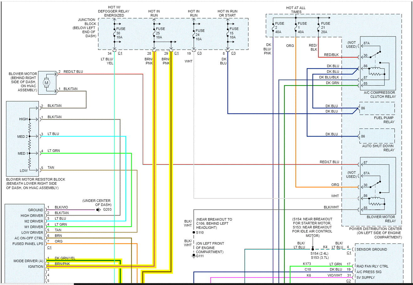Customer brought this vehicle in with a no heat issue. Customer already did the pita job of replacing the heater core but changed nothing. I notice that the air blows only out of defrost and gets lukewarm. So, I suspect a blend door issue. The actuators on the top and side of the HVAC assembly do nothing, no spinning or clicking. The only thing that works is the fan speed on the control unit. Fuses #25 and #29 are good.