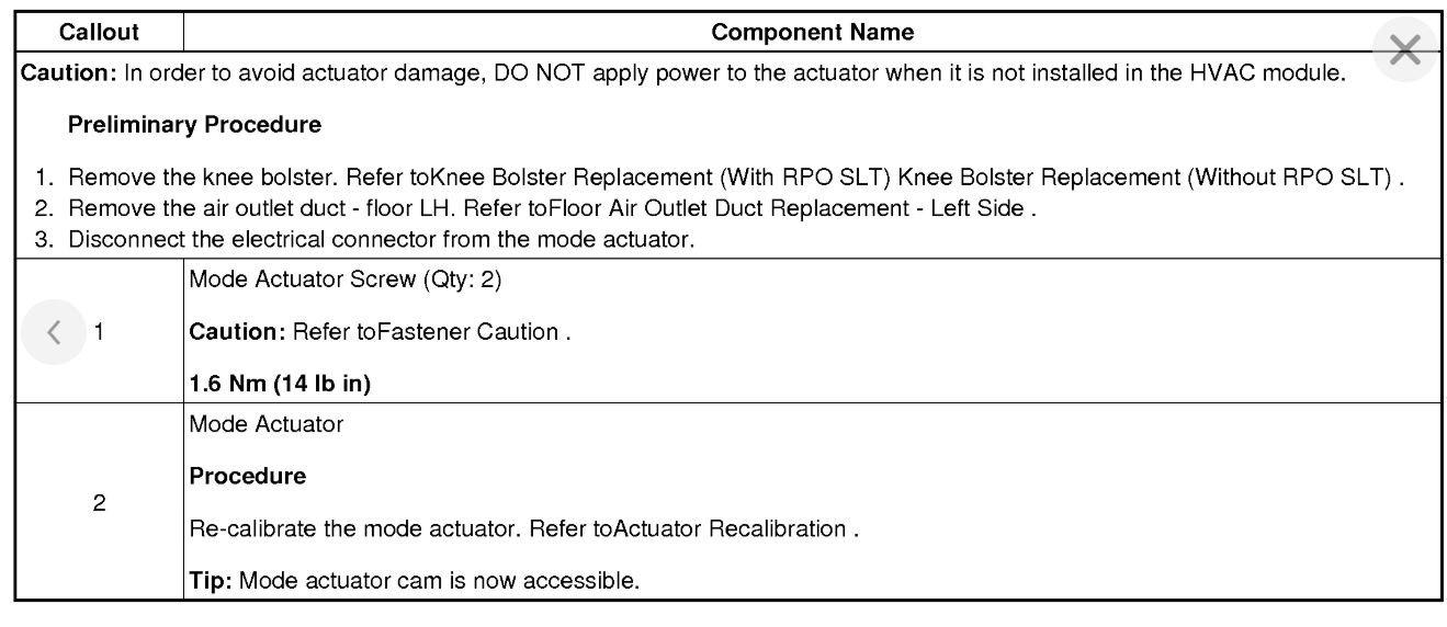 The defrost mode will not engage. It stays on the main vents. I can change the temperature for both sides of the truck. But will not go to the defrost vents at all. This is a 1500 crew cab.