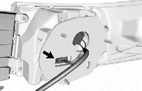 (a)Turn the rear combination light socket and wire sub-assembly with the rear turn signal light bulb in the direction indicated by the arrow shown in the illustration, and remove them as a unit.