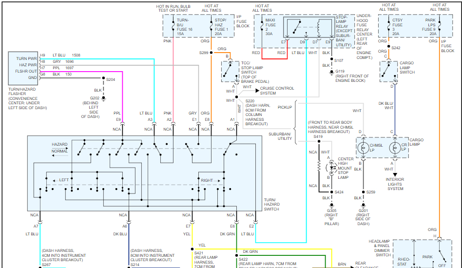 Truck listed above is a c1500. I have no blinkers and only hazards. When I use my turn signal either left or right while I have the lights off, it just turns on the hazards. When I turn the lights on, the blinker lights on the dash stay lit and do nothing when you flip the switch either left or right.