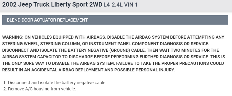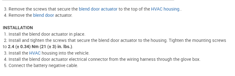 MODE DOOR ACTUATOR REPLACEMENT