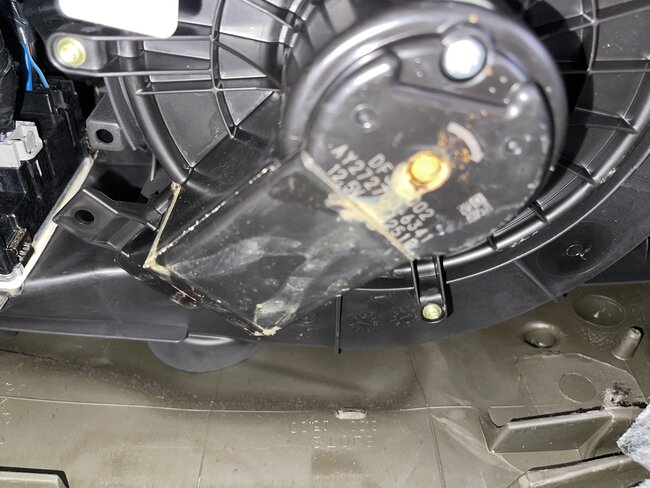 We need to pull the motor out and inspect inside the box. Also, if you haven't already, check the cabin air filter to make sure mice didn't get in there and are making a mess. The cabin air filter is located under the hood at the top of the firewall.