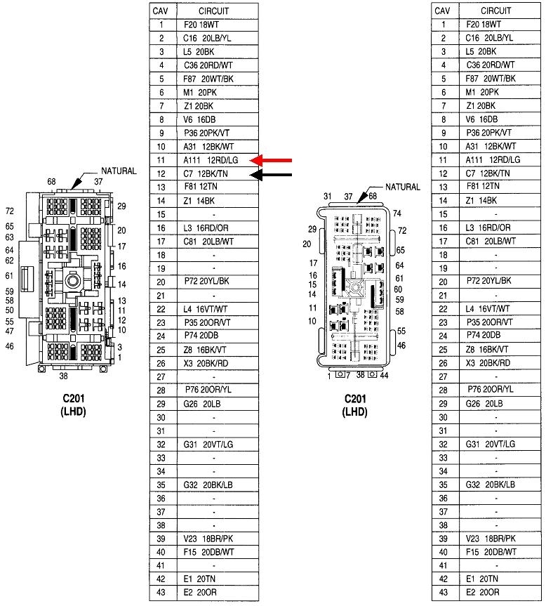 If you look at the first of the three diagrams I originally posted, I just noticed there is another connector shown, "C201", for this system. The dashed line between the wires indicates every wire related to the control assembly, relay, and fan motor, except for the ground wire, passes through this C201, so if you can find that, it's a perfect place to take voltage readings, and it's a perfect place to find overheated connector terminals. Judging from the size and number of terminals, this could be a bulkhead connector, and as such, it can be hard to reach and take readings on. The fan is a high-current circuit, and you'll see the terminals for the two wires I have arrows pointing to are much larger than most of the other terminals, to handle that high current.