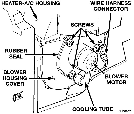 If the vehicle is equipped with air conditioning, move the suction and discharge lines as required to remove the blower motor assembly from the engine compartment.