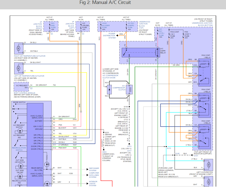 We need to check for power using a test light for the fuse (HVAC Blower 30 amp), in the under-hood fuse panel, this guide can help and the fuse location in the diagrams below, also I have included HVAC wiring diagrams so you can see how the system works.
