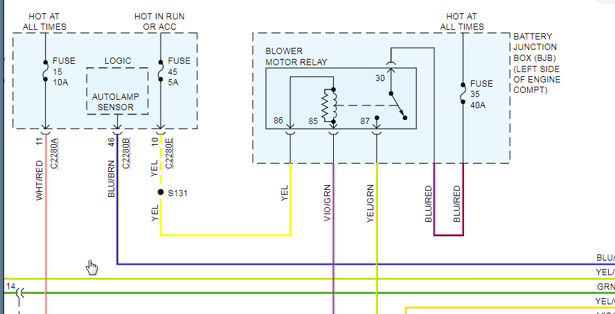 Here is a wiring diagram and I would suggest just jumping back and making sure you have power on both sides of the fuse. If you do, then go to the relay and make sure you have it coming out on the two wires that are going to the speed control/resistor.
