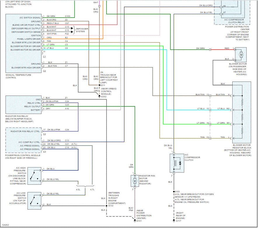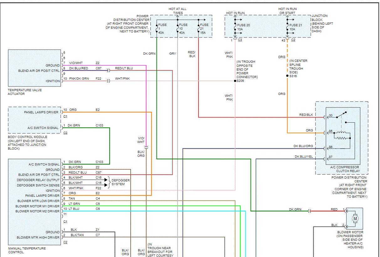 I attached the entire wiring schematic below for the HVAC system. There isn't a relay for the blower motor. Are you referring to the blower motor resistor? Take a look through the schematic and see if it helps.