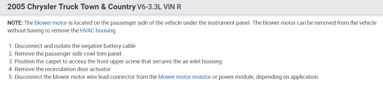 I checked fuse replaced relay and resistor blower still doesn't work. Going to replace blower. What is easiest and best way to remove blower on 2005 Chrysler Town and Country?