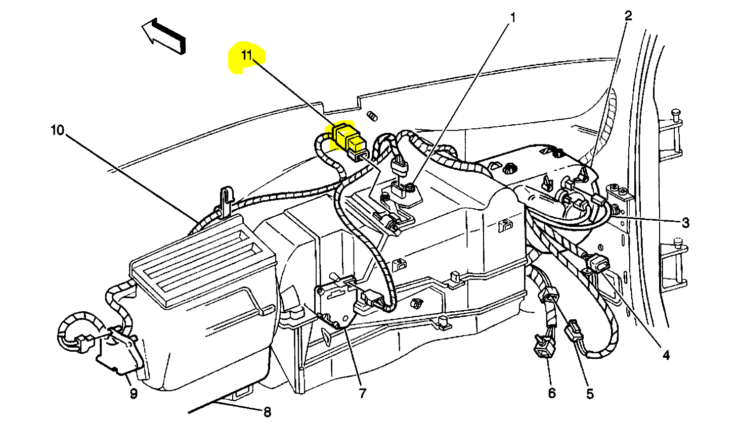 If you are unable to turn it off, my first suspect is the blower motor high relay. It is located behind the instrument panel compartment. See pic 1 below.