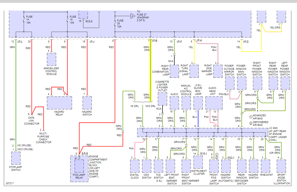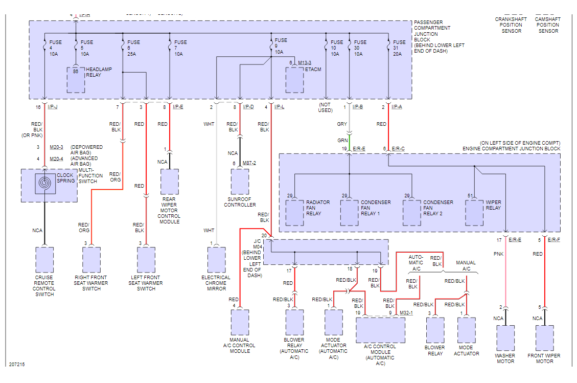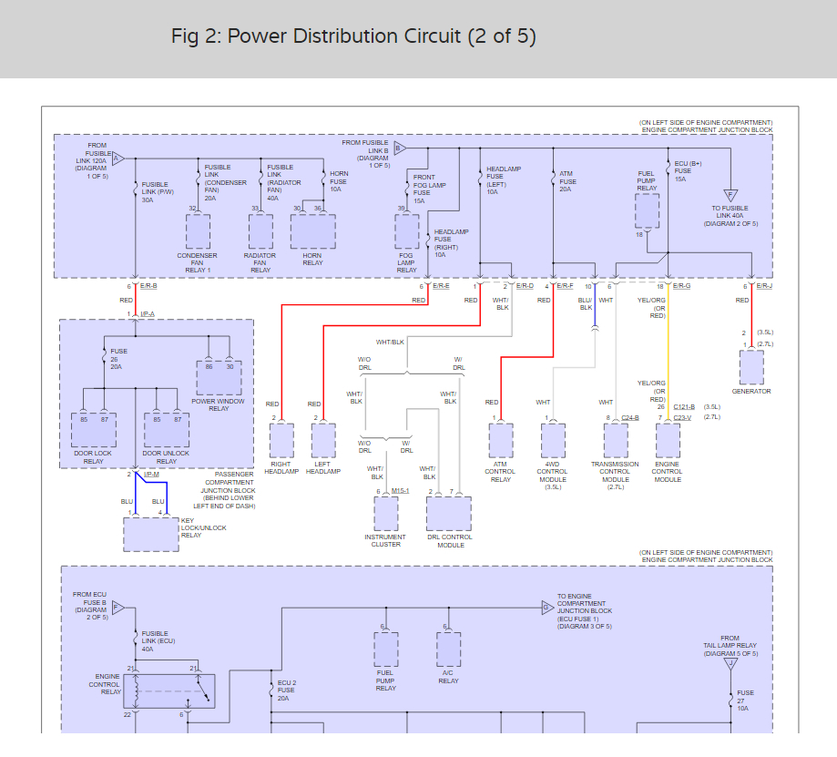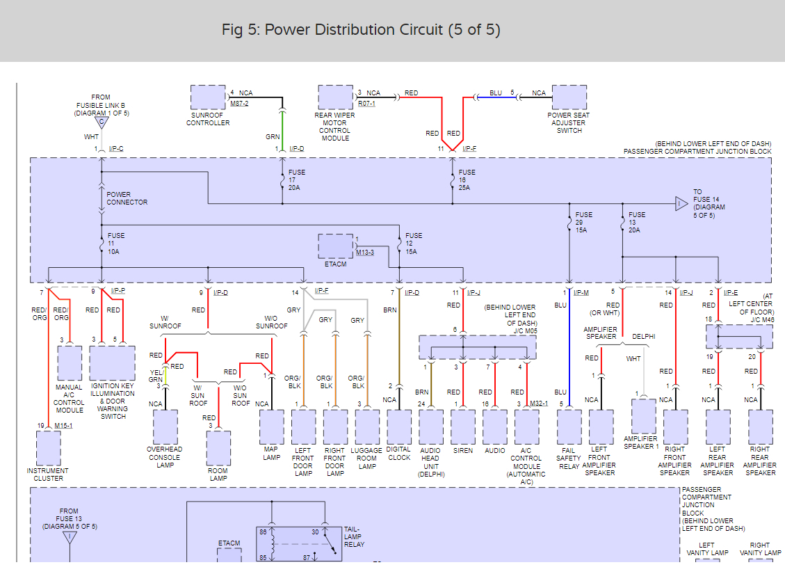 So, in the diagrams below I have given you the diagrams for the under hood fuse box and the Power Distribution Wiring Diagrams for your vehicle. Follow the circuit from the blown fuse and find the wire that is shorting to ground from the information below. Please get back to us with what you find out.