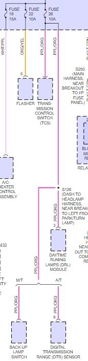 I see it is hot with the key on run and it feeds the transmission control switch, daytime running lights module, the backup lamp switch and the digital transmission range switch.