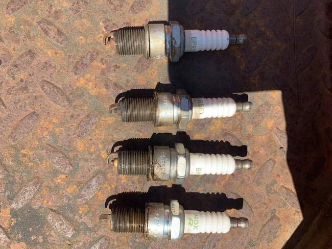 I'm attaching a picture of the spark plugs and video of the engine running while preparing for the compression test. The truck never came up to operating temperature (which is a problem that was present previously and another reason I'm suspecting that the head gasket is, in fact, blown) after 5.5 minutes but did move up about a sixteenth of an inch.
