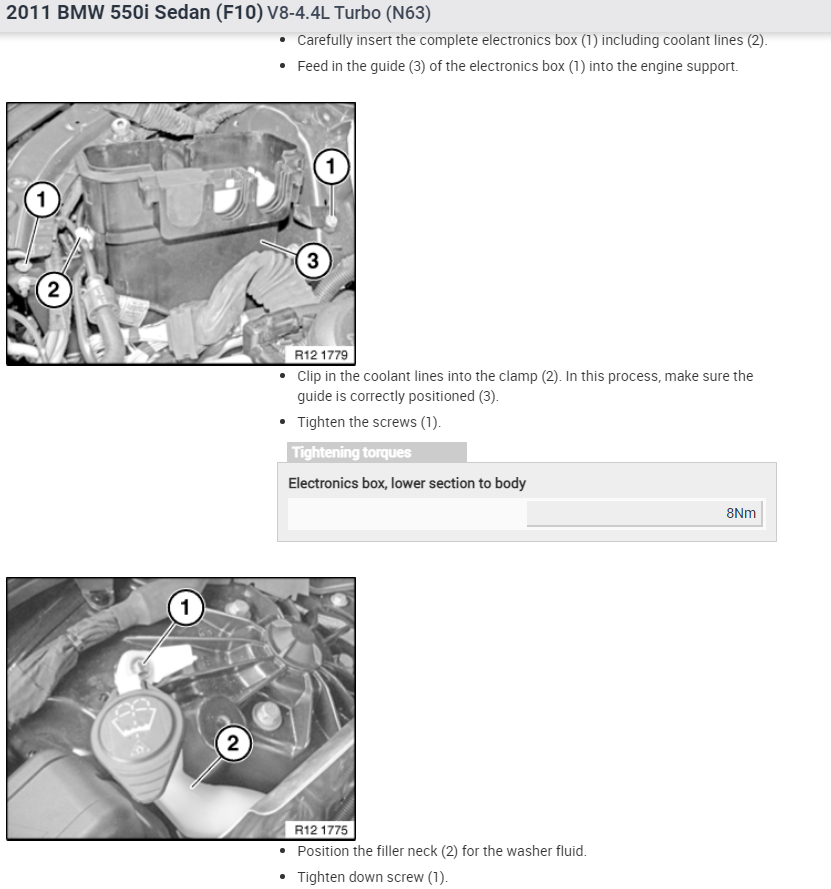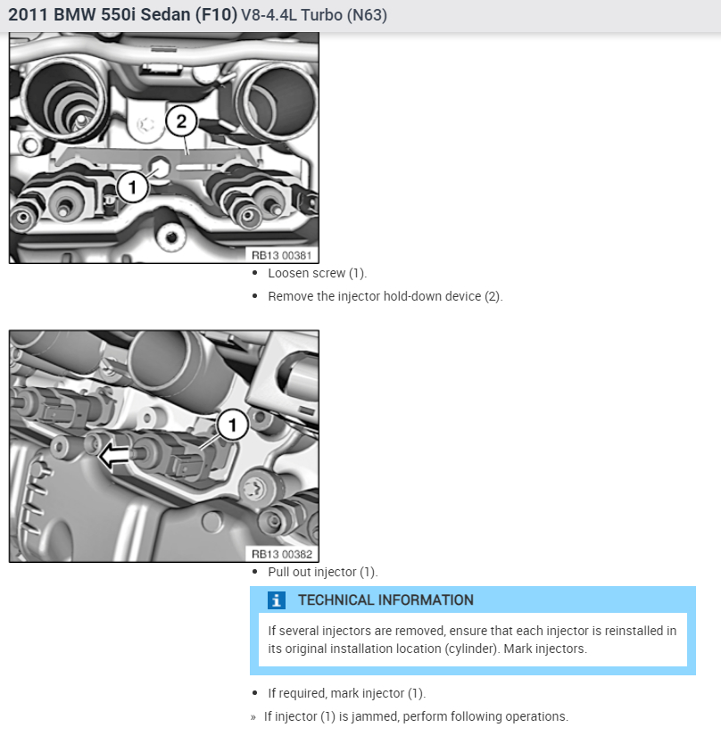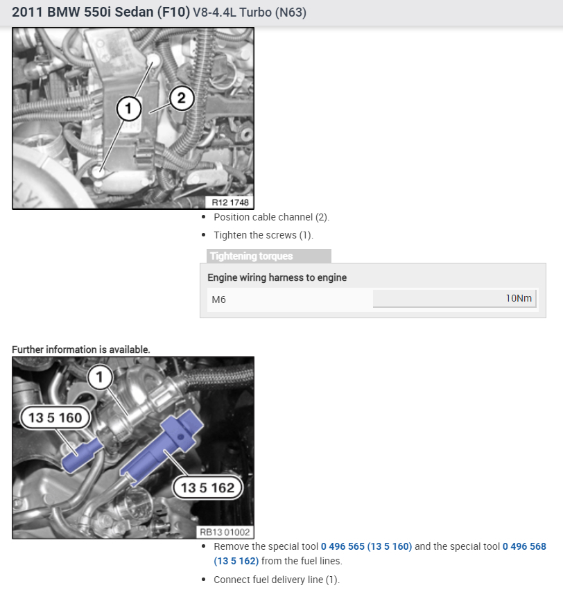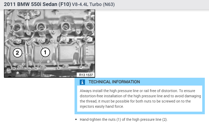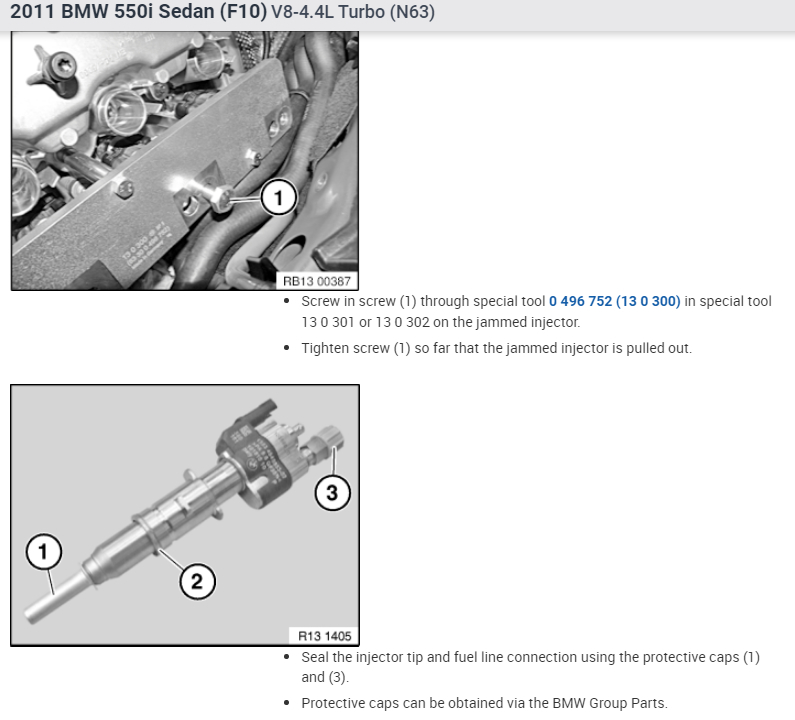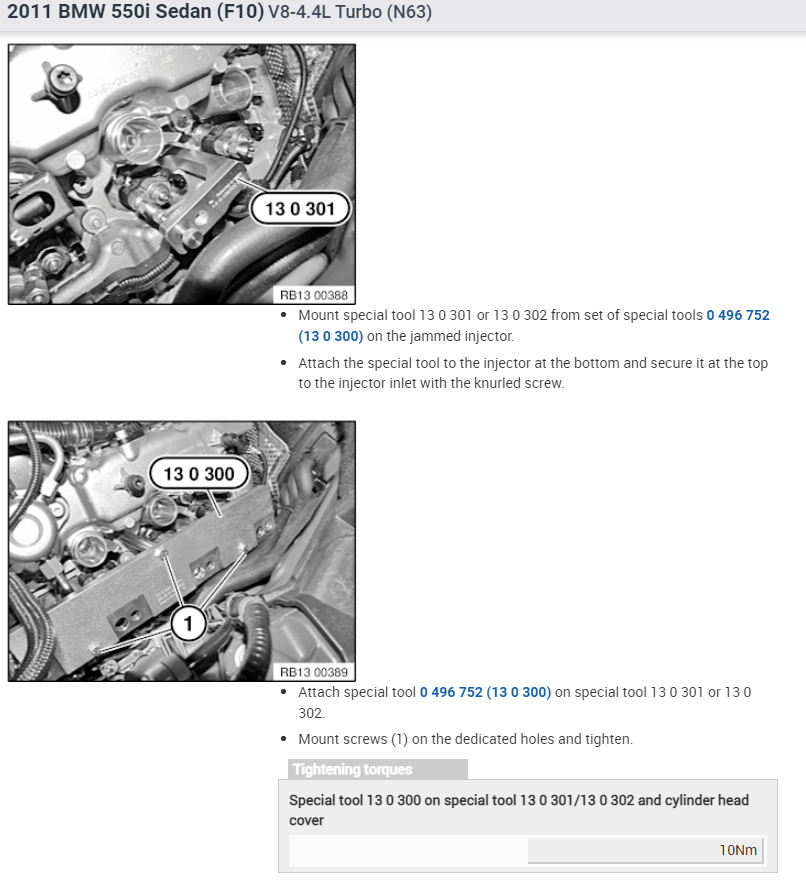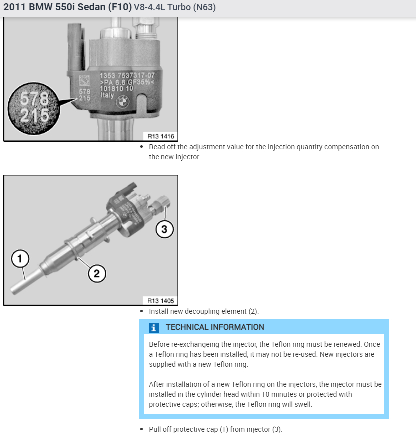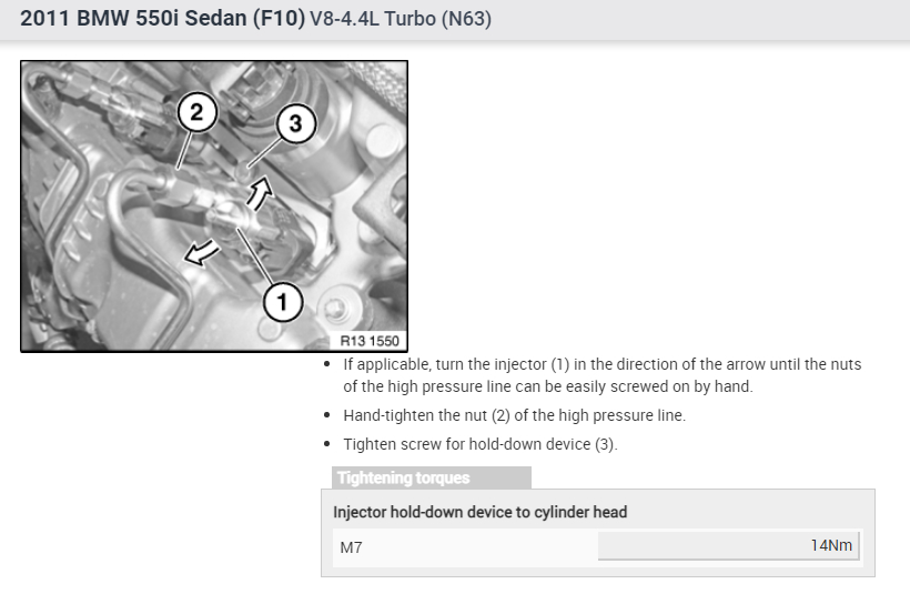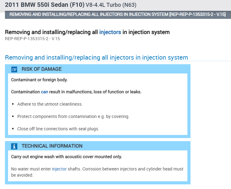 Hi, I have the work process you provided in a separate thread to replace the valve cover gaskets for the BMW N63 engine. Both of mine are leaking, and I plan to replace the gaskets. Can you please provide the work process to remove and install the fuel injectors, in particular the installation work process: remove, reinstall with pro tips, torque value to seat the injectors into the cylinder heads, etc? I will purchase new fuel injectors.