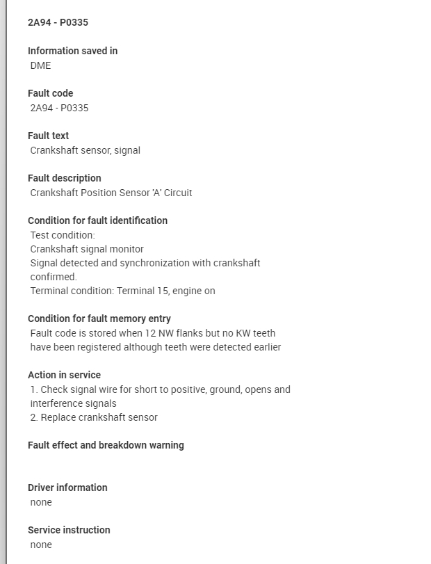 Basically, the meter is not able to tell us if the pattern is correct so even if you are getting voltage at the DME that doesn't mean the sensor is sending a correct pattern. If it does not send this pattern, then the DME will not recognize it and will not know when to fire the ignition and fuel system.