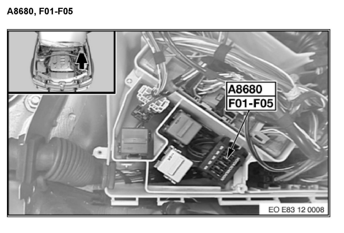 One under the hood, other under the dash panel on the passenger side and the third one by the batter in the back. I have attached pictures for all three for your reference.