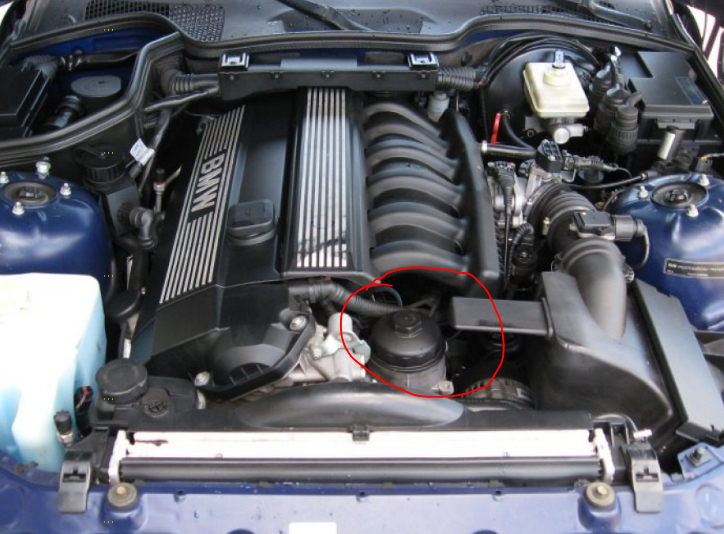 The oil filter is located on the front upper part of the engine. It is under the oil filter cap (see picture below).