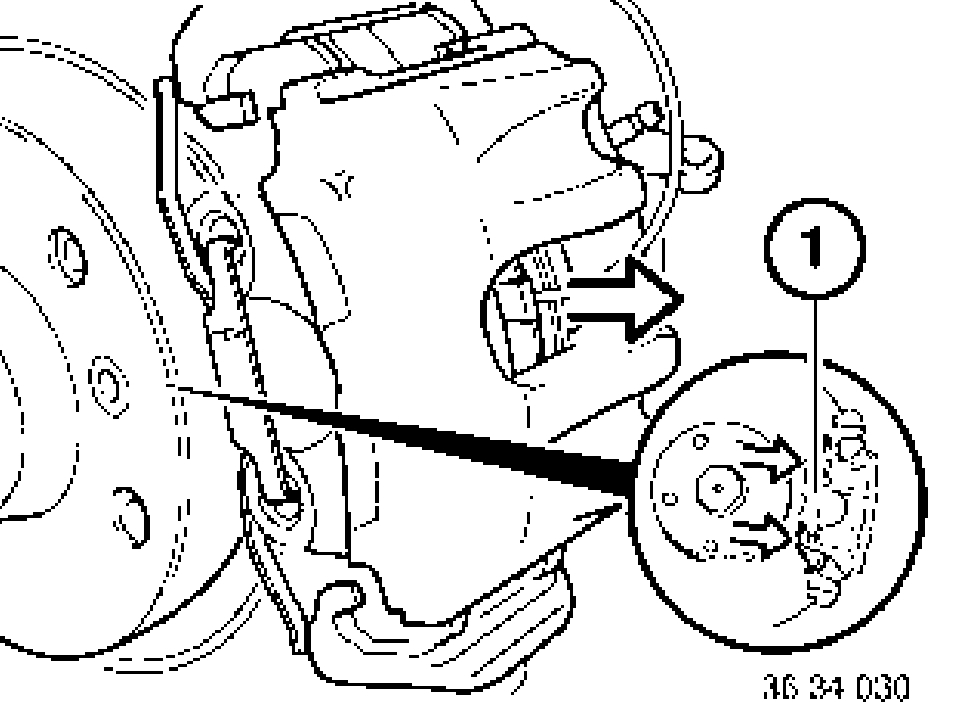 When turning back the piston, watch the brake-fluid level in the expansion tank, as overflowing brake fluid will destroy the paintwork.
