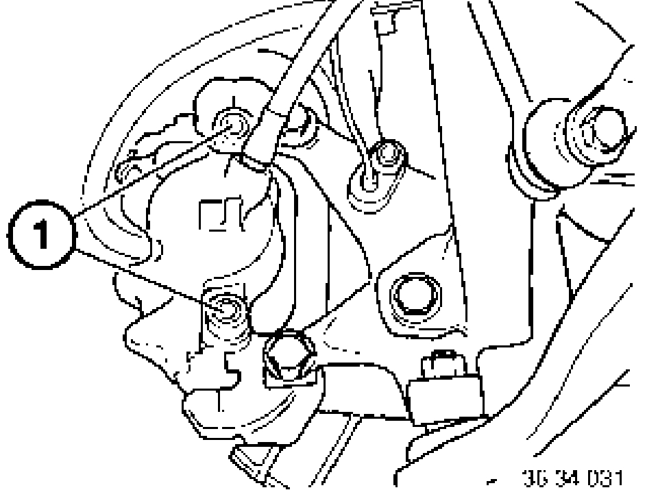 Unfasten guide screws (1) and lift out brake caliper towards rear of vehicle. Do not allow brake caliper to hang from brake hose, risk of damage to brake hose.