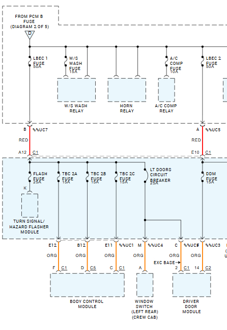 Question regarding Body Control Module (BCM). Truck was killing batteries overnight, door locks and lighting acting weird. While probing fuse block (fuse removed) I found that the fuse socket for LBEC1 had voltage on both side (12.6/11.9) which may be normal but didn't make sense to me? Found the wiring diagram for LBEC1 and here's what I did/found: at key off and all downstream fuses removed socket read 12.6v/12mV. Flasher fuse in (12.6v/15mV), add door c/b (12.6v/1.5mV), add TBC 2a (12.6v/1.8mV), add TBC 2b (12.6v/1.5mV), add 2c (12.V/11.9v). Thought it might be drivers door module since I have had issues due to poor design, unplugging DDM (12.6v/11.9v). Pulled TBC IGN under hood 12.6v/11.9v). At key on voltage goes to 12.3v/5v. Pulled LBEC2 thinking it might be back feeding through DDM, no luck. Pulled BCM, had some corrosion on pins, cleaned up, reinstalled, passed diagnostics via OBD port. Only other codes are B0159-13 which I am trying to track down (new sensor did not fix), B1259-13 (xm radio antenna which I don't use, and despite the truck never having been in a collision two B0159-13 codes. Thinking the BCM is the culprit or is the strange voltage normal?