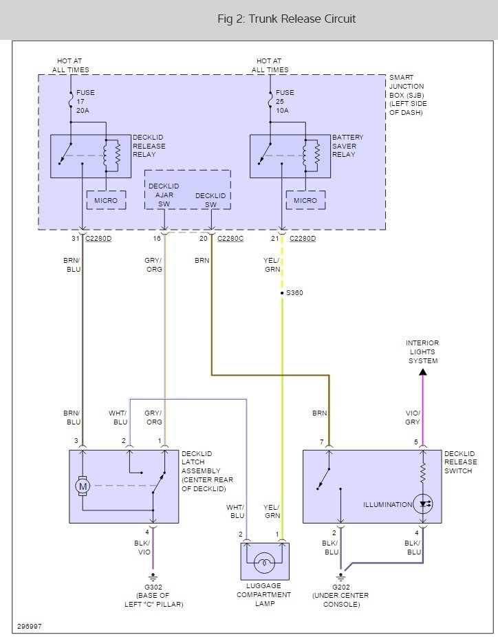 I have a problem where there is no power to the boot/trunk latch activator. I believe the wiring goes to the BEM. I have to take out the front seats and the center consul to get to the BEM. I have checked the actuator by connecting directly to a twelve volt supply and it works okay. There are three wires that go to it. A ground and a positive and also a switch wire. I imagine that the actuator should be powered up all the time and the switch wire breaks the circuit to allow the solenoid to open the latch when the remote button is pushed. There is no loose connections in the trunk/boot. There is no voltage at the positive and ground connection. The wiring disappears in behind the rear seat parcel shelf so I cant trace it further than that although I imagine it flows under the carpet and up to the BEM. Is there further tests I can do before I pull out half the interior and dash tho get to the BEM? Am I missing anything? I have checked all the fuses under the dash and under the hood and all are testing OK.