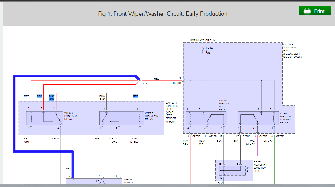 From what I can see no they don't. They do not share a common ground, which can be just as, if not more, important. 75% of all vehicle problems are in the grounds of the affected circuits. I have included wiring diagrams for both the windshield wiper and the rear window defogger circuits in the diagrams down below. Please get back to us with what you find out, or if you have any other questions, please do not hesitate to ask.