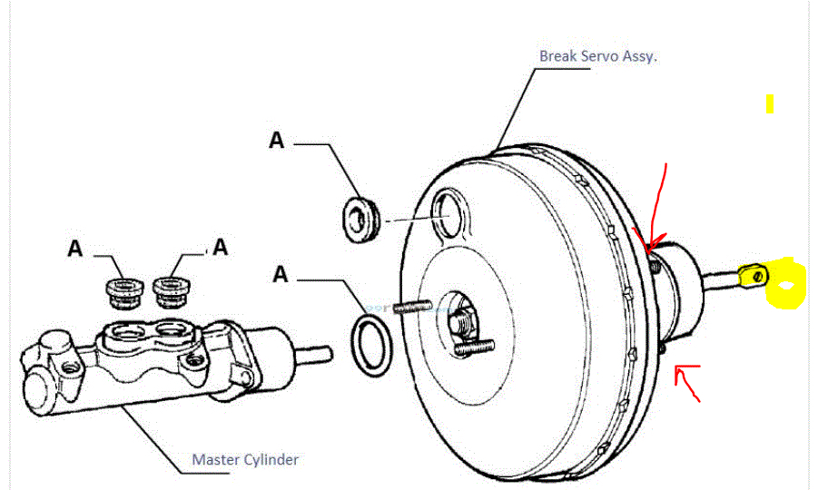 Next, you will need to remove the vacuum supply to the booster (hose) and unbolt the brake master cylinder and gently move it forward and off the booster.