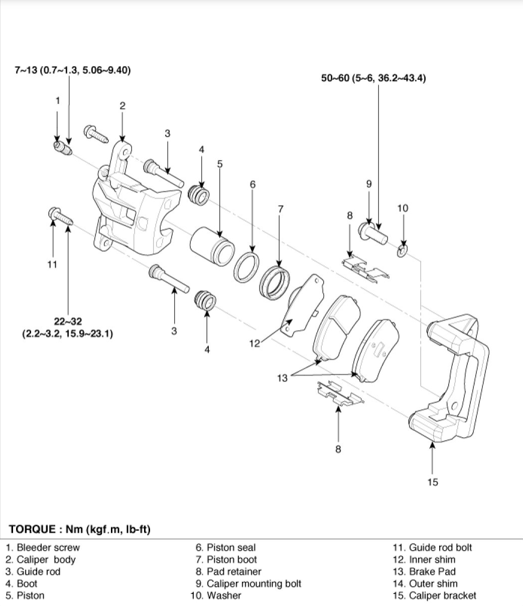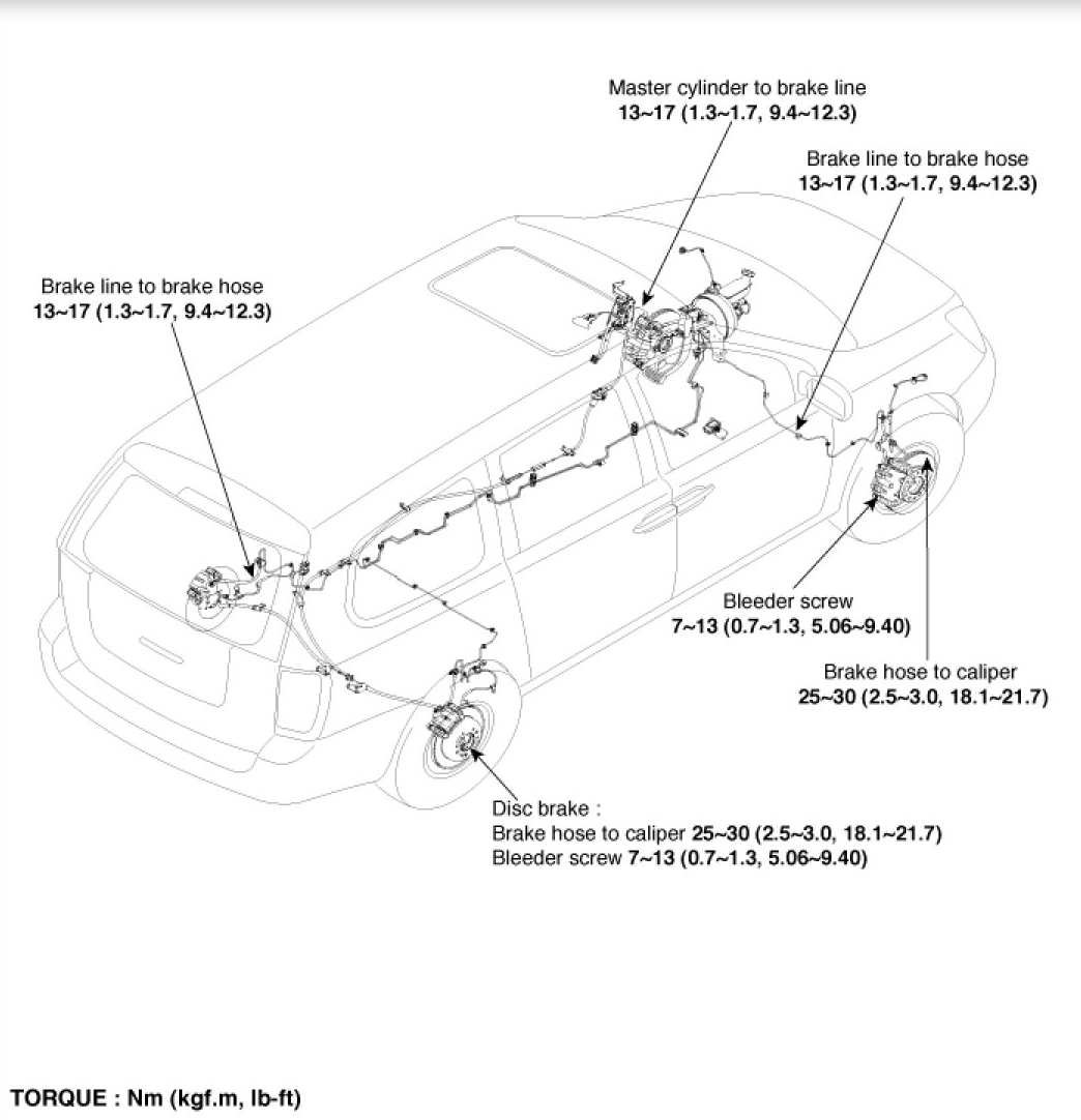 I have also attached diagrams with the tightening torques for the hose and caliper bolts.