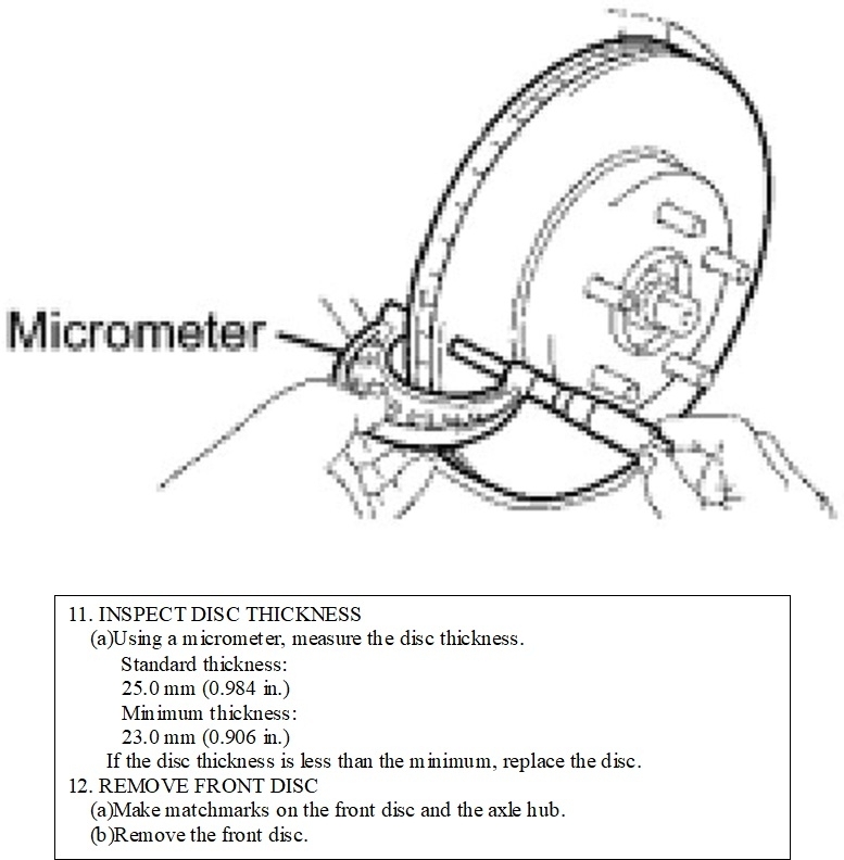 Checking the rotors is next. If you had any pulsation in the brake pedal, the rotors have excessive thickness variation. Machining them will take care of that, but you must also consider the overall thickness. Every model has a published legal thickness the rotors can be machined to, then often there's a slightly smaller dimension they can be allowed to wear to. Those specs are called the "machine to" spec and the "discard" spec.