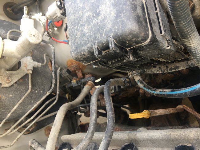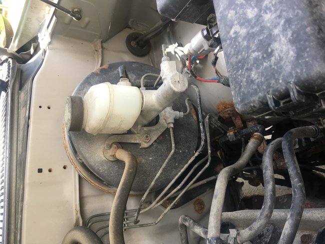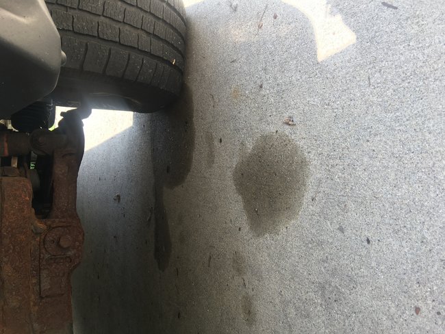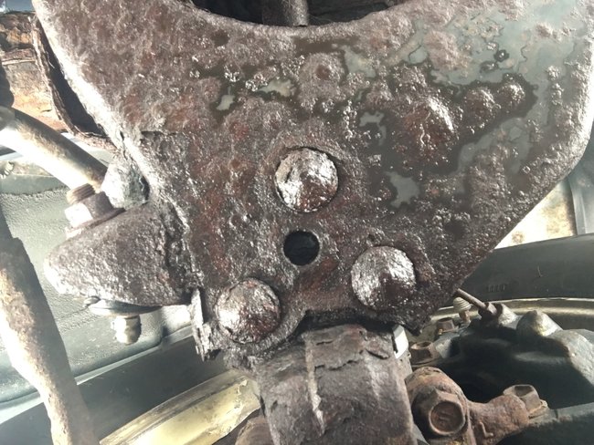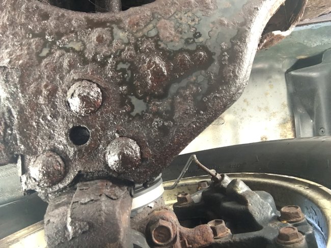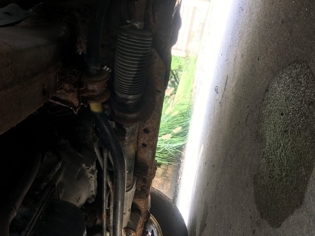 You may have a loose hose or a bleeder nipple that need tightening, also there may be a failed brake hose. Calipers rarely fault but this cannot be overlooked either, a quick check can be to wash down the wet section and top up the brake fluid, with the rear dry, watch while someone pumps the brake pedal. You should be able to see any fresh leaking. If a leak is located, it would be advisable to have it repaired there or get it towed to a workshop, driving with suspect brakes can be very dangerous. If you locate the leak and require further assistance please re-post on this thread for more information. Just looking at the pictures again, it looks as if the leak may be coming from around the master cylinder or a pipe as it appears that the leak is dripping off the steering rack boot as well. Can you advise if this is the case? The steering rack boot is the black rubber concertina boot on the steering rack.
