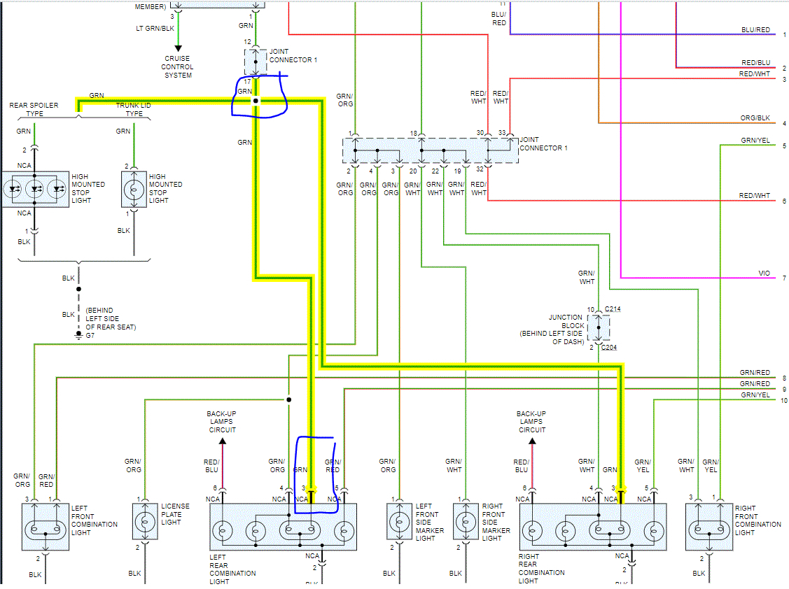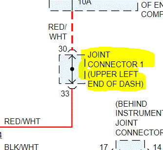 If there isn't, then the next concern is the splice I circled. Chances are the connection has failed. If you look at pic 2, it explains where the joint connector is located. I will need you to check there next.