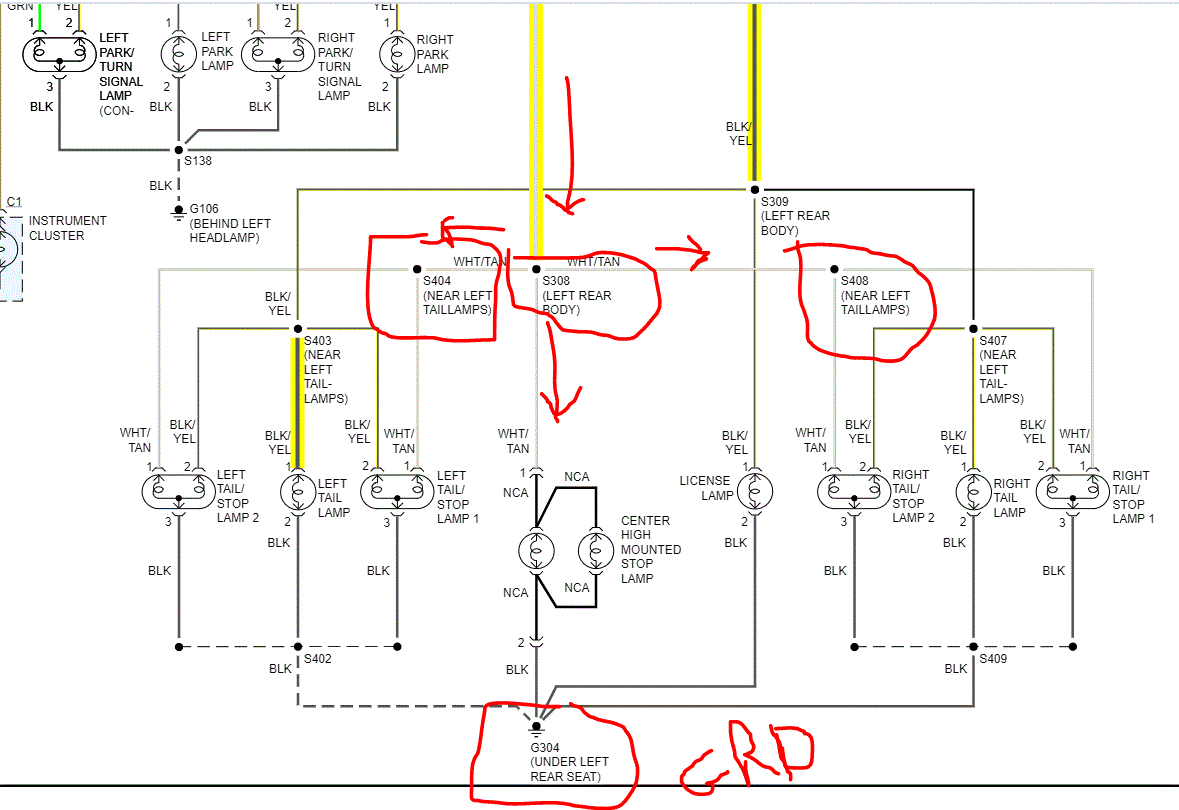 Here is what I need you to do. Note the power supply for all brake lights is a white wire with a tan tracer. I need you to locate that wire on each side and check if there is power to it. If this happened all at once, I suspect the first splice is the issue or the ground. But we need to check for power at the lights and work backwards to see if we can determine where power is lost.