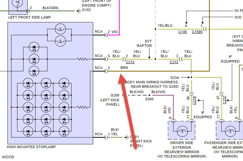 I put a topper shell on my truck that has an eye level brake light. Where do I connect the wire for that light that will only light for brakes, not turn signal? If possible, I would like to do all the connecting in the left tail light.