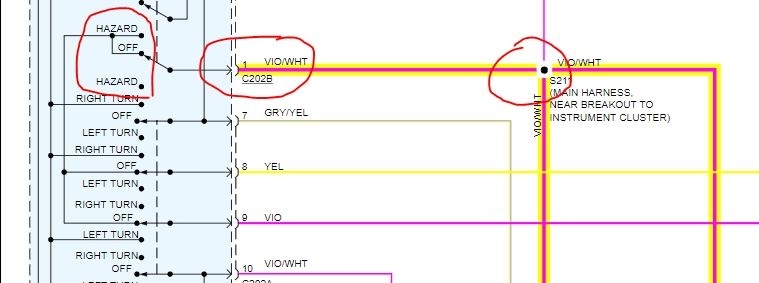 The next area of possible concern is a splice. Take a look at pic 3. The wire on the left goes to the 3rd brake light and the one on the right (both the same color) goes to the brake lights. If the splice is good and power is there, the problem is between that point and the light sockets. I feel it is unlikely that the problem is the splice just because the signals work. The splice is also used for the hazard lights. See picture 4