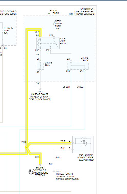 I am pretty sure this is the issue because if the center high mount works with the headlights off and then not when they are on, the only common thing is the module. However, it is nice to test it and confirm this as there is a chance that the multifunction switch is the issue but it is unlikely.