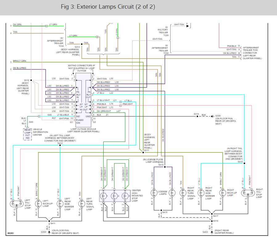 The rear running lights work but my brake lights do not also my turn signals on both sides including four ways are not working also no matter if the lights are turned on or off. I have change the multi switch on the column I change the uses of change the relays a change the brake switch I change the bulbs and still nothing also the third brake light in the tailgate does not work check all the wiring cannot find any visual damaged anywhere. Also I went out to the vehicle morning and there was clicking noises coming from the passenger side fuse block. Here are the relays for the turn signals and also in the relay right next to that one the smaller black square box relay was also clicking both all by themselves.