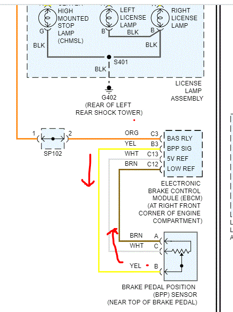Take a look at pic 1. You see where power starts at the fuse. Power is then supplied through a relay to the brake light switch via the orange wire in pic 2. From there it goes through the module to the switch (see arrows) and when the brake light switch is closed, power flows back to the joint connector and distributed to the lights.(pic 3)