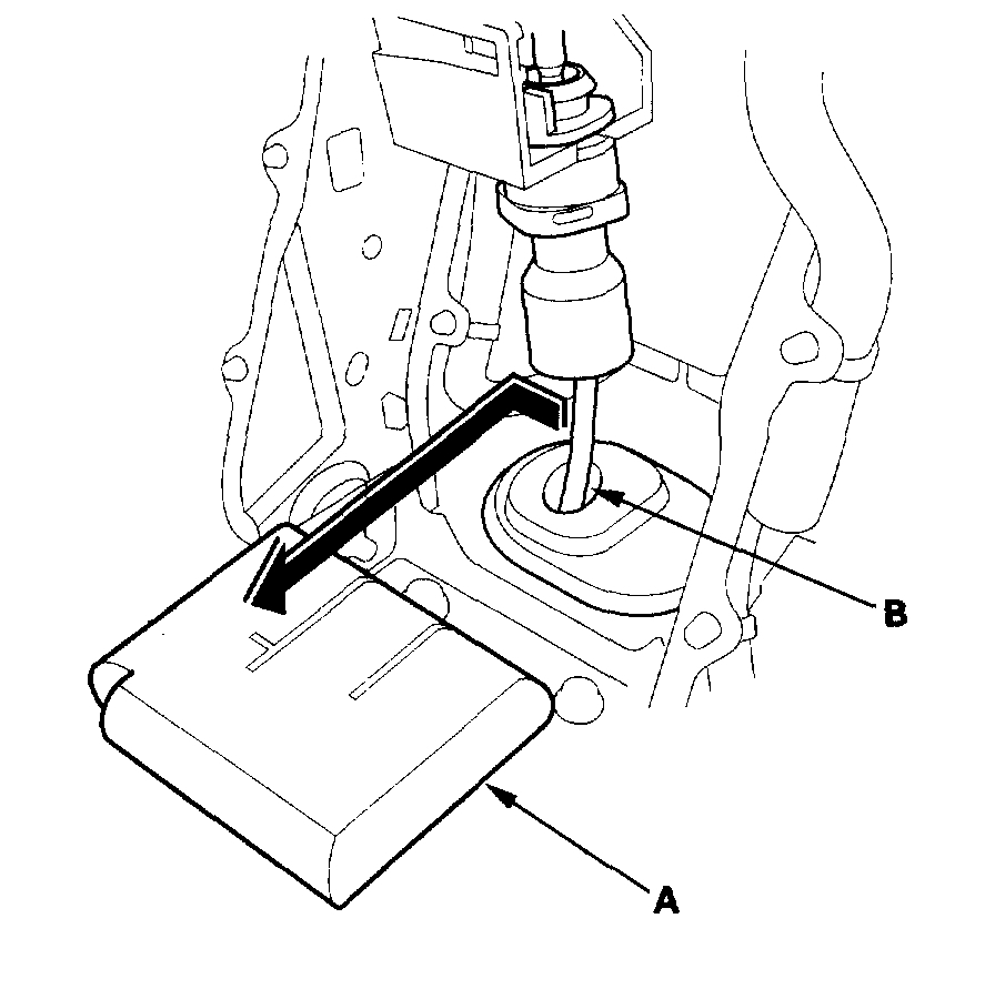 7. Separate the shift cable end (A) from the shift cable end holder (B).