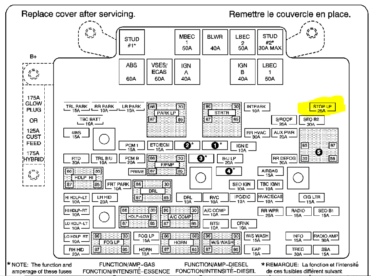 If you look at pics 3 and 5 below, I highlighted the fuse and its location. Pics 7 and 8 are the fuse boxes. Seven is under the hood and eight is in the vehicle. Check the fuses I highlighted.