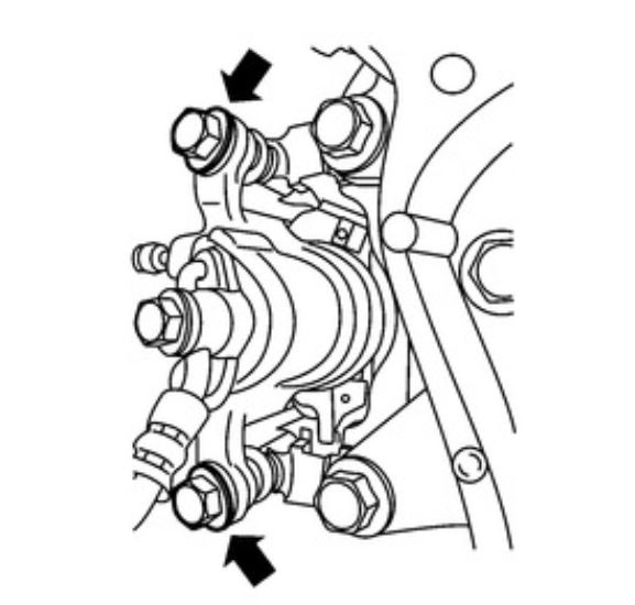Remove the upper and lower sliding pin bolts. Refer to Exploded View.