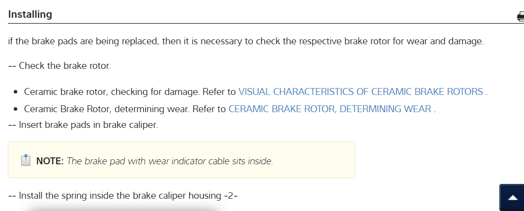 I have included the information that you requested in the diagrams down below. It not only contains the instructions for removal and installation of the brake pads,, it also has instructions for inspection and measuring the brake rotors. I have also included a link for you to go to down below: https://www.2carpros.com/articles/how-to-replace-front-brake-pads-and-rotors-fwd
